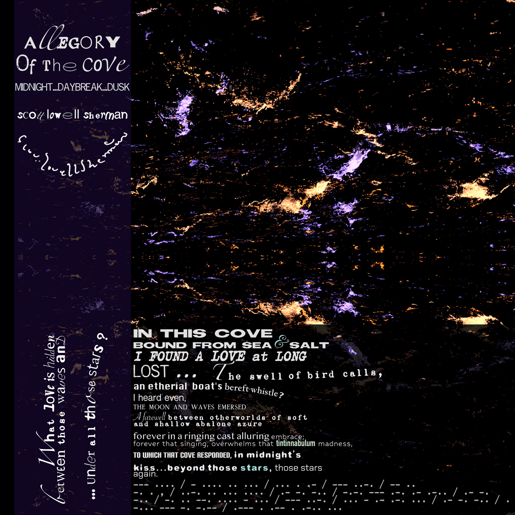 The album "Allegory of the Cove: Midnight...Daybreak...Dusk," composed and performed by Sherman, uses handmade porcelain gongs and bowls, piano, glasses, bird calls, and digitally manipulated sounds to invite the listener into an imagined cove. The music guides the listener through a temporal transformation from midnight to daybreak, beginning at midnight. Stark forlorn birdcalls precede the emergence from an etherial otherness.In the cove, mysterious boats of peculiar shapes and colors materialize and vanish like playful apparitions. Adorning the tops of these tugboats are porcelain tubes that catch the wind, producing whistling horn calls like celestial love songs. We also hear reverberations of an ancient Japanese Gagaku orchestra--the music once only heard by the highest imperial royal family. At daybreak, Whooper swans emerge, singing mating calls calls to one another in melancholy harmony. The boats echo these calls in unison, offering a prayer of safe travels. At dusk, crickets and fireflies whisper strange rhyming poems to a fisherman who casts his line by lamplight, into the utmost calm water.